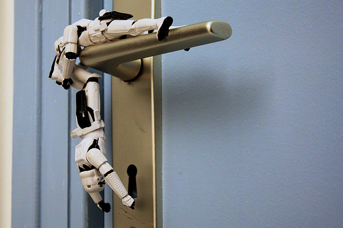 Sous le masque d’un honnête père de famille des environs de Nantes se cache en fait un geek mordu de Stormtroopers (les soldats de l’Empire galactique dans la Guerre des étoiles, en non geek) : les fans auront reconnu Stéfan, l’auteur de la série Stormtroopers 365, utilisée sans parcimonie par Owni (toutes ces belles images en CC sur Flickr, on aurait tort de s’en priver…) Un projet de publication quotidienne d’une nouvelle photo “à teneur garantie en Stormtroopers”, pendant un an. “Des figurines Hasbro, pas des vrais Stormtroopers car je n’en connais pas personnellement”, précise-t-il. Car l’homme a de l’humour, comme vous pourrez le constater dans cet entretien.
