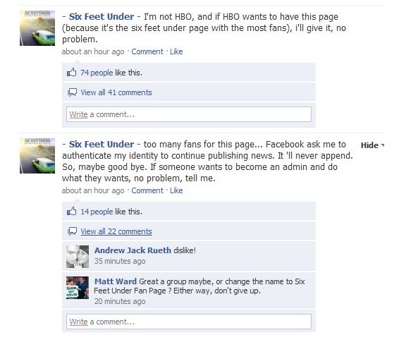 - Call Facebook and tell them to close the group.: the Six Feet Under example.
