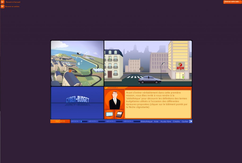 Cyber-Budget, sorti en 2006 pour le compte du ministère du Budget (à l’époque dirigé par Jean-François Copé) avait pour vocation de familiariser les Français avec les contraintes budgétaires de leur pays et avec quelques notions de finance publique. Malgré un petit bug à l’allumage, c’est sans doute celui qui a été la plus grande source de satisfaction. Car outre l’échec de Retraite Vers Le Futur, l’autre serious game commandé récemment par l’administration n’a pas non plus été une réussite.